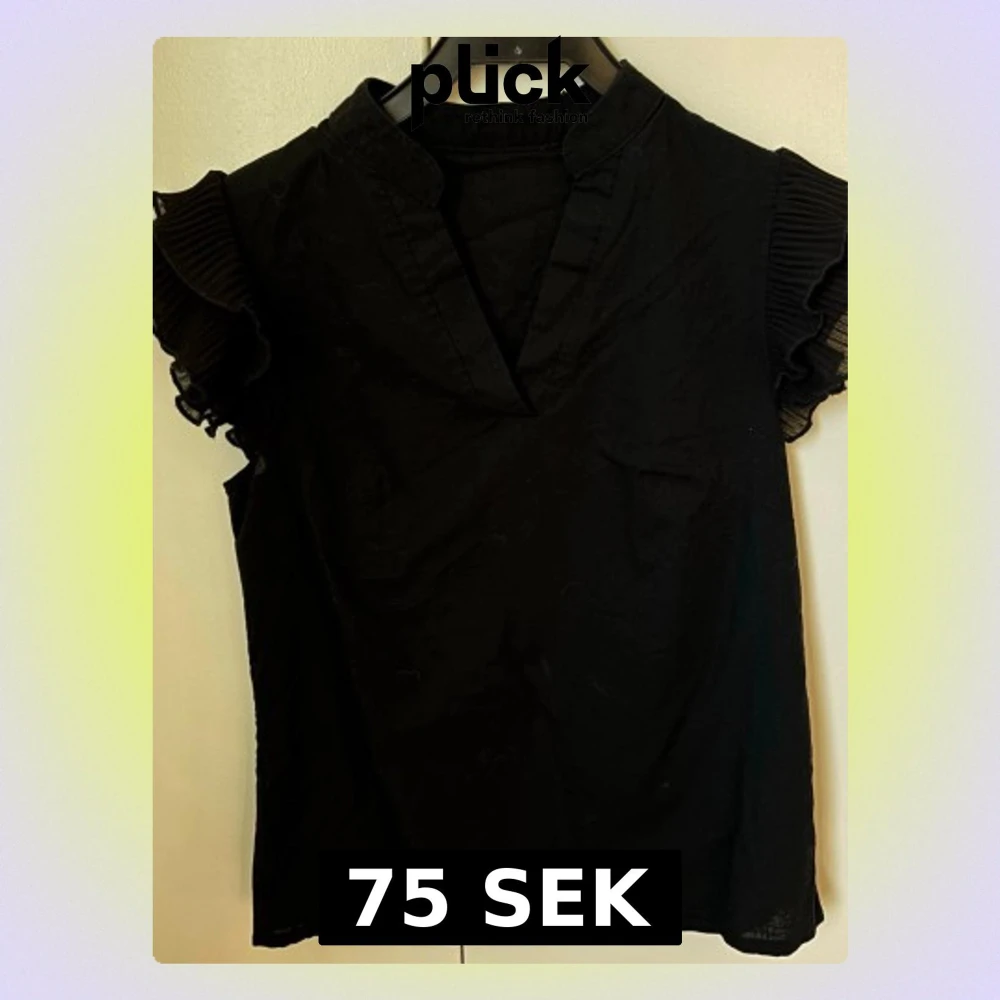 Fin svart topp med volanger på armarna jag köpte secondhand! Aldrig använt!❣️
