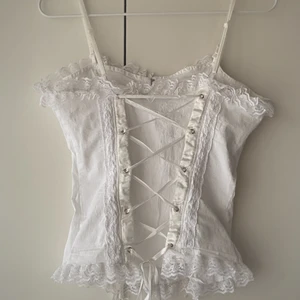 Vacker, vit korsett med fina spetsdetalier och snörning på ryggen. Storlek 38 från märket BLAKE. Köpt i en vintagebutik. Inga defekter, aldrig använd då den är för stor för mig. Kontakta om det finns intresse! <33