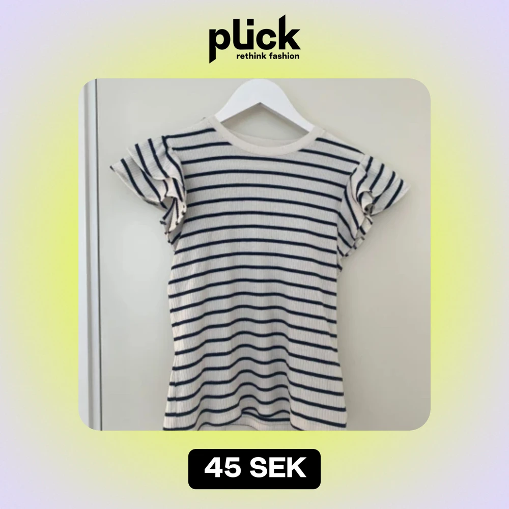 Denna tröja är super söt till sommaren och är väldigt fin. Tröjan har marin blåa ränder och är ribbad. Denna tröja har använts ett fåtal gånger. Köparen står för frakt