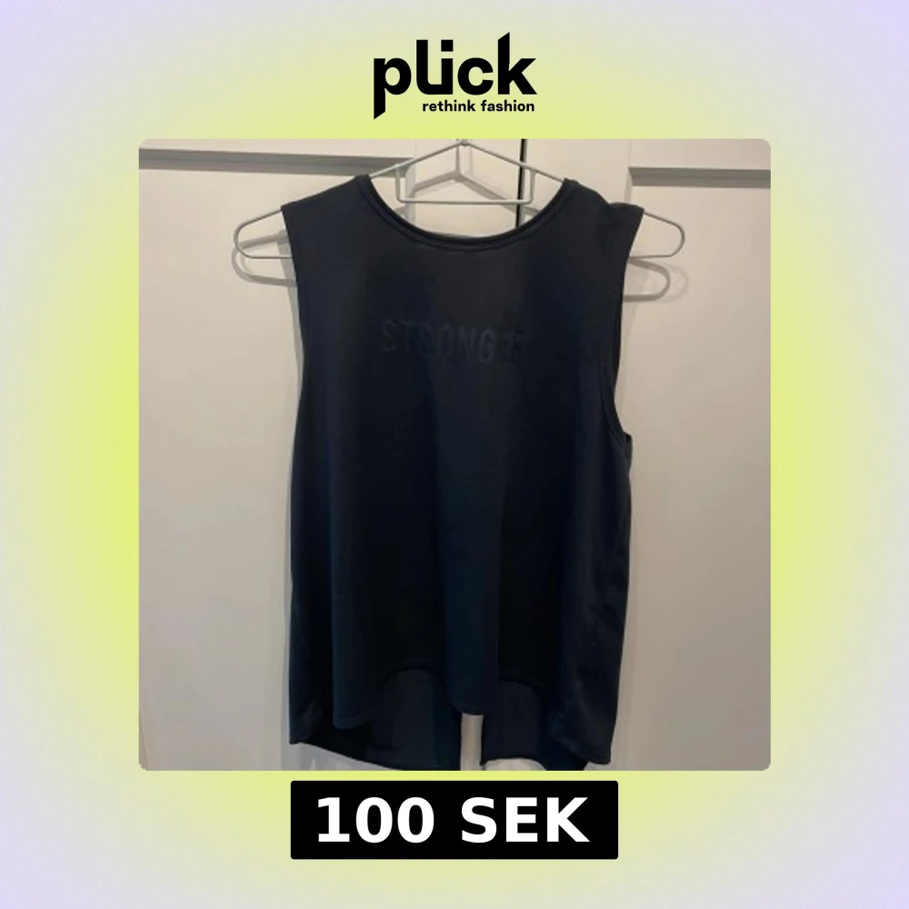 Snygg svart linnetopp från Stronger med diskret logga framtill. Modellen är ärmlös med rund halsringning och längre baktill med en cool slits i ryggen. Perfekt för träning eller när du vill ha en sportig look.