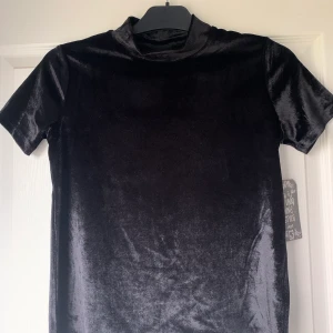 En svart sammetlikande tröja! Prislappen är kvar dvs, aldrig använd! Har en liten krage och är lite kortare i modellen, väldigt fin! ✨ Köpt för 80kr