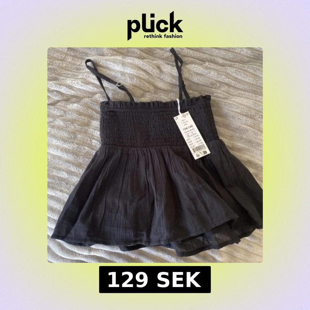 Supersöt svart linnetopp med smockad överdel och tunna justerbara axelband. Säljer pågrund av att den är för liten. Nypris 179kr😗💋❤️✌️