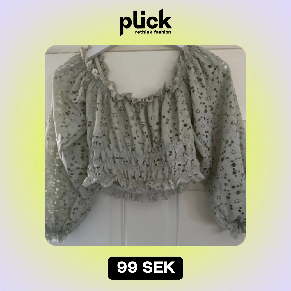 Säljer en superfin grå topp från Bik Bok med spetsmönster🫶🏼🫶🏼