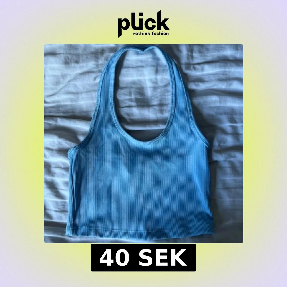 Säljer en ljusblå ribbad linnetopp från H&M Divided i storlek S. Toppen har en croppad passform, breda axelband och rundad halsringning.