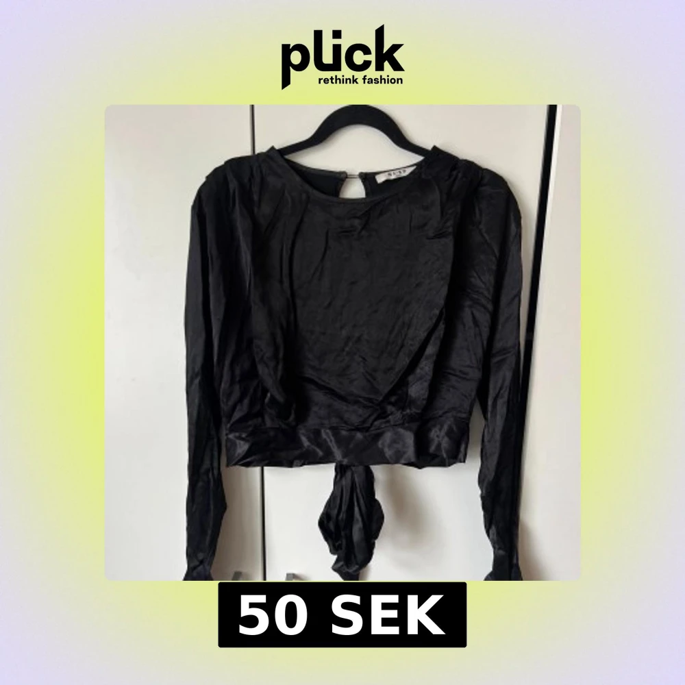 Säljer en svart långärmad croppad topp från NA-KD i glansigt material. Toppen har knytning baktill i och har en öppen rygg.