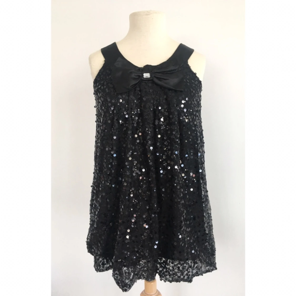 Paljettopp/klänning med dekorativ rosett. Märke: Kappahl Storlek: 158/164 Skick: Mycket gott. Endast provad. Pris: 100 kronor Frakt: Betalas av köparen.