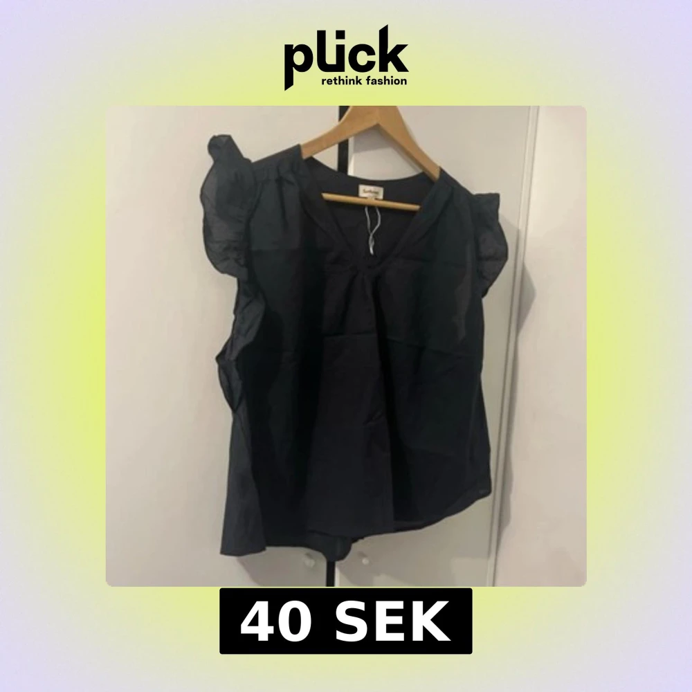 Svart blus från Sunflower med volangdetaljer på axlarna och v-ringad hals. Blusen är ärmlös och har en luftig, loose passform som ger en chill vibe. Perfekt för dig som gillar stilrena plagg med lite extra edge. Materialet känns lätt och bekvämt mot huden.