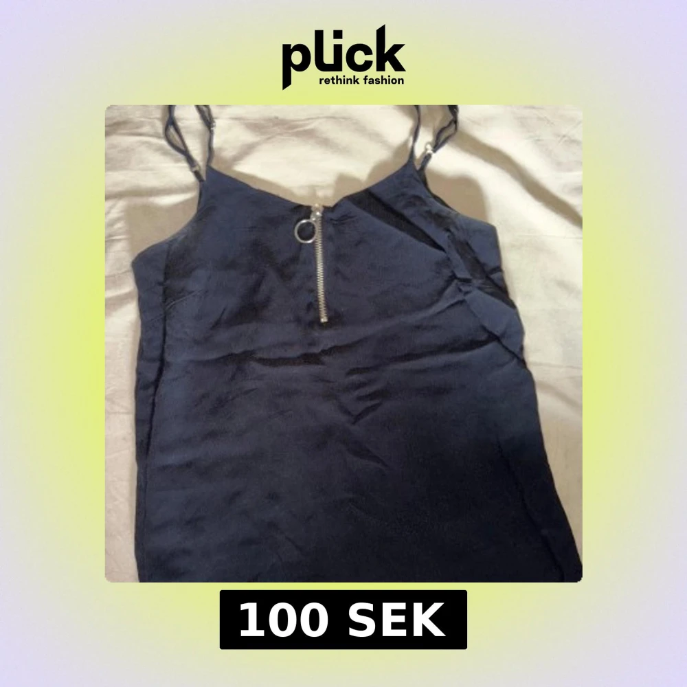 Säljer en svart linnetopp med smala axelband och en snygg silverfärgad dragkedja framtill med ringdetalj. Toppen har en enkel och stilren design, perfekt att matcha med jeans eller kjol.
