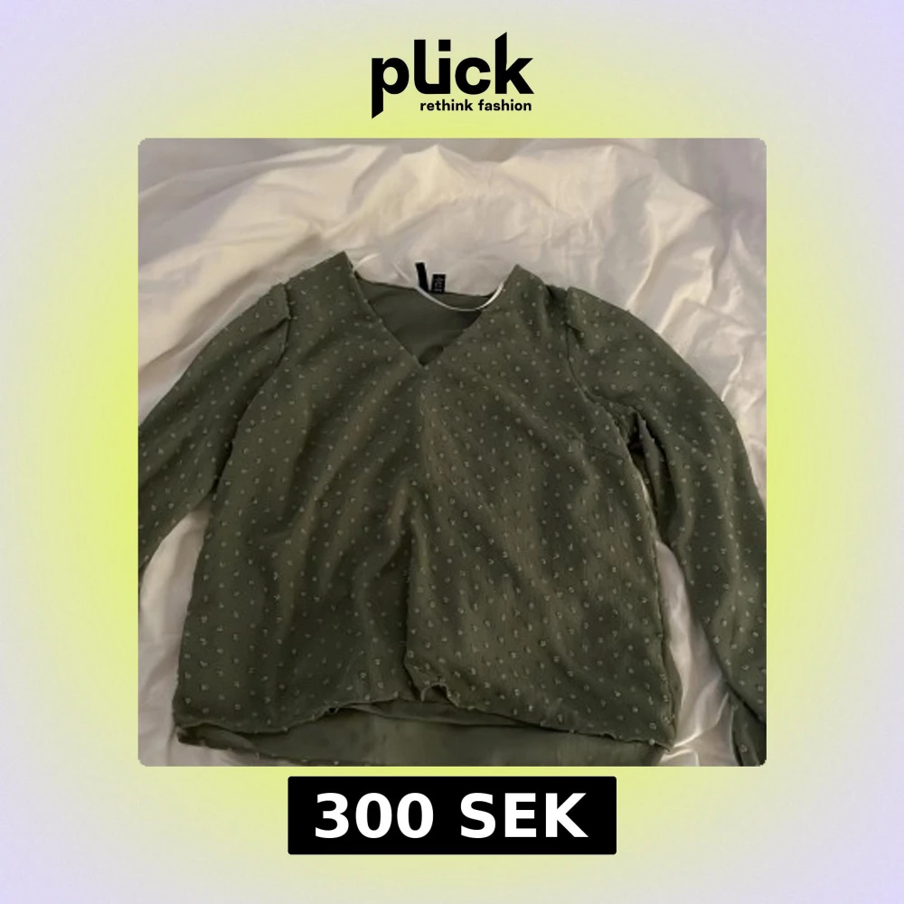 Snygg grön blus från Vero Moda med diskreta prickar och v-ringning. Blusen har långa ärmar med lätt puff och är tillverkad i ett tunt, flowy material som ger en luftig känsla. Perfekt att styla med jeans eller kjol för en trendig look. Endast använd 1 gång