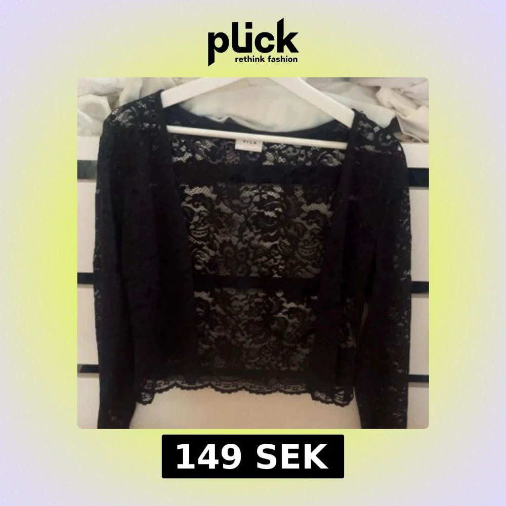 Snygg svart kofta frĂ„n VILA i genombruten spets med blommigt mönster. Modellen Ă€r croppad och har lĂ„nga Ă€rmar. Perfekt att slĂ€nga över ett linne eller klĂ€nning för en extra touch. đ„°helt i nyskick!