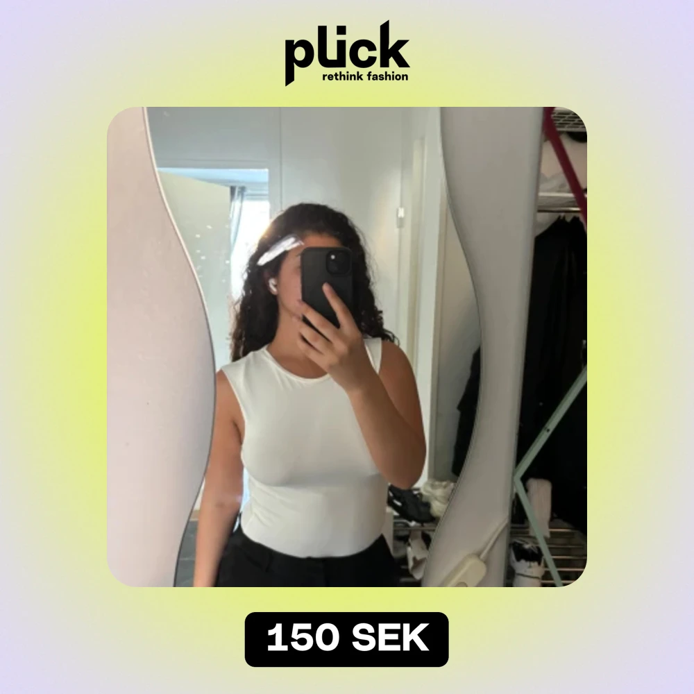 En oanvänd enkel och stilren vit ärmlös body. Bodyn har en rund halsringning och är tillverkad i ett mjukt och bekvämt material.