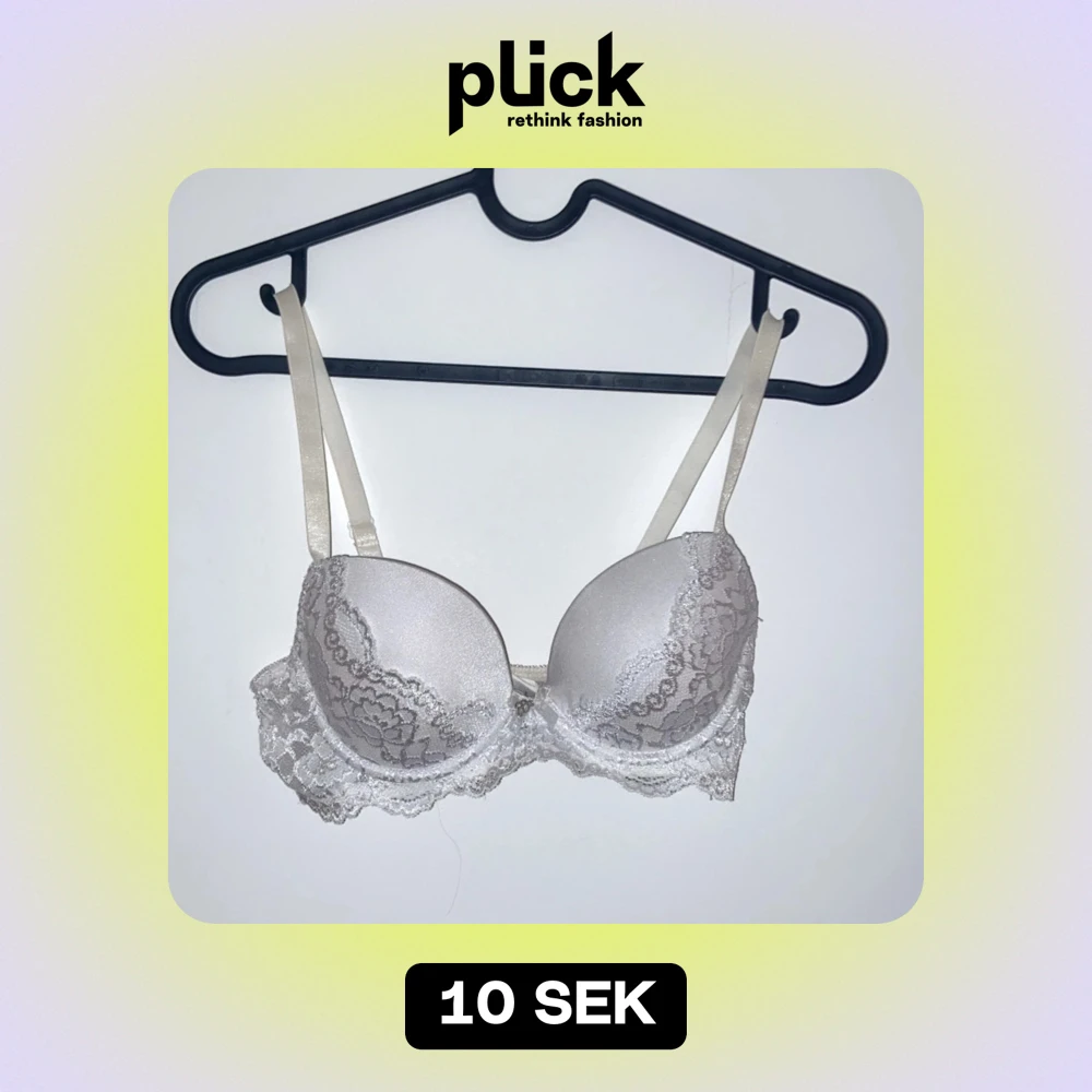 Säljer en elegant vit bh med spetsdetaljer. Den har justerbara axelband och en fin spetskant. Perfekt för att känna sig extra fin till vardags eller fest. Observera att det finns en liten fläck på insidan av bandet.