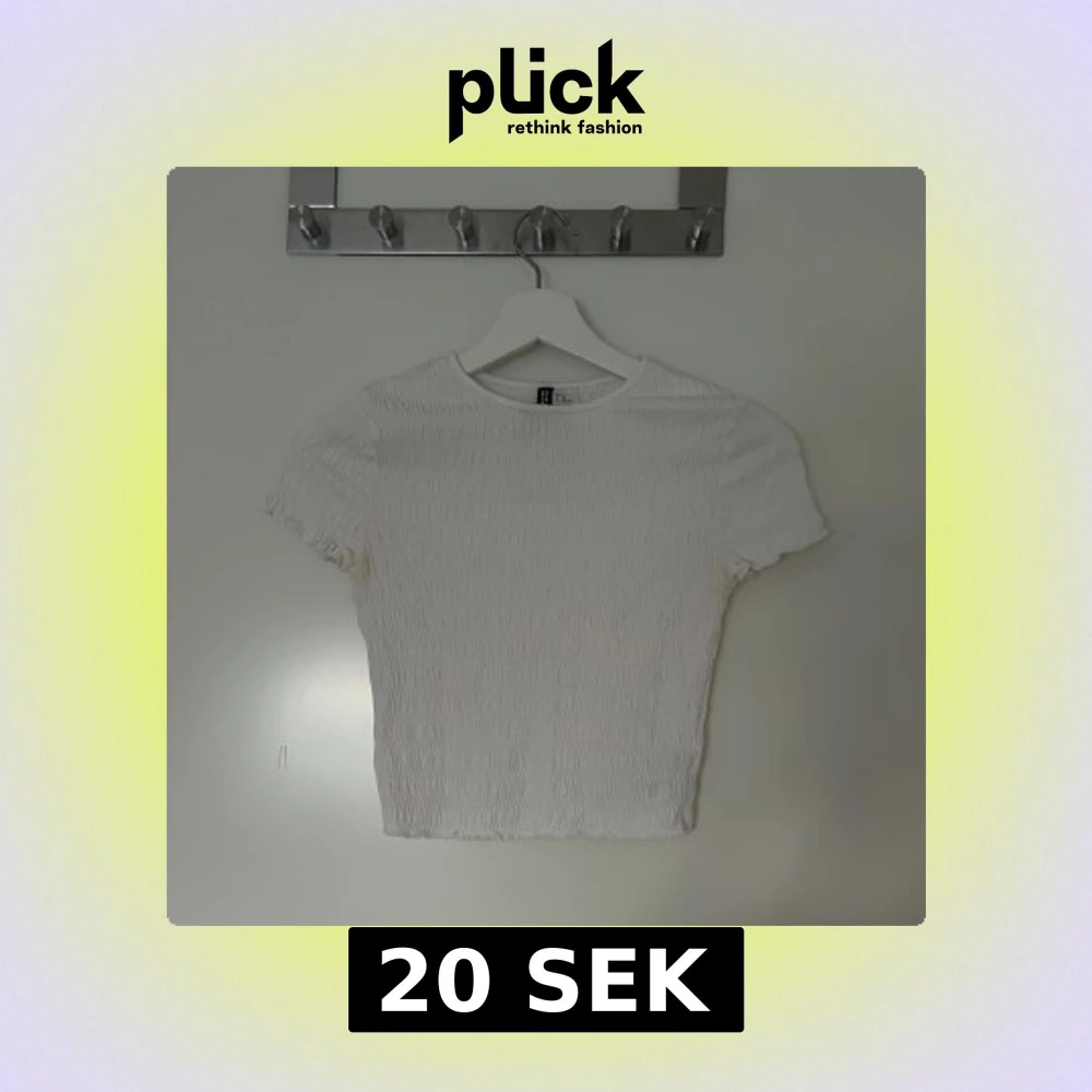 Säljer en vit topp med ”ribbad” struktur och korta ärmar. Toppen har en tight passform och är perfekt för dig som gillar en enkel men trendig stil. Rund halsringning och stretchigt material gör den superbekväm.