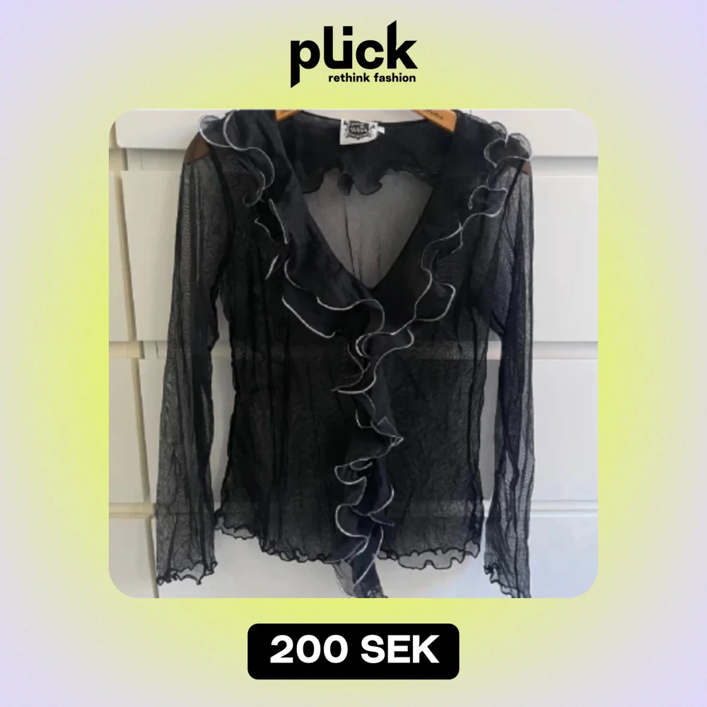 Mesh topp med silvrig kant pĂ„ volangen đ