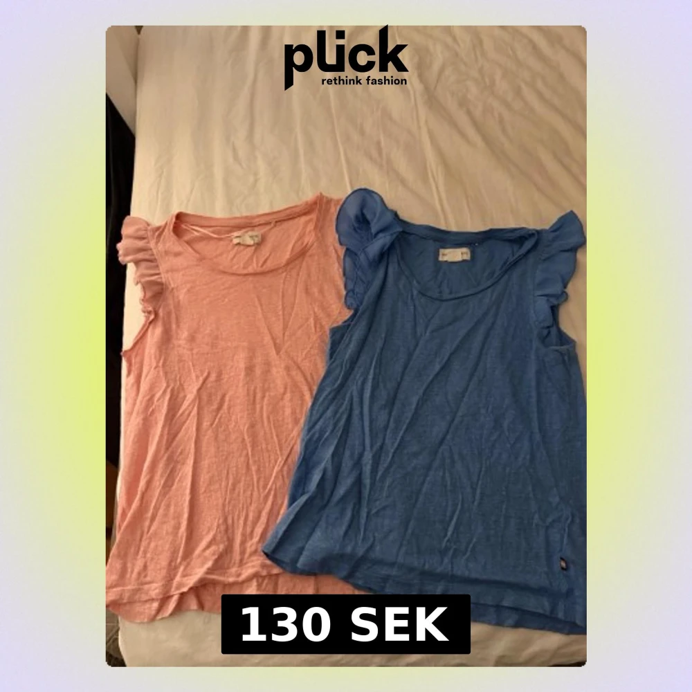 Två snygga toppar från Holly & Whyte by Lindex i storlek XS. Ena är ljusrosa och andra blå, båda ärmlösa med volangdetaljer på axlarna. Perfekt för sommarens alla dagar, mjukt bomullsmaterial och rund halsringning. Priset är för båda, men om man vill ha ena då hör av er!💕