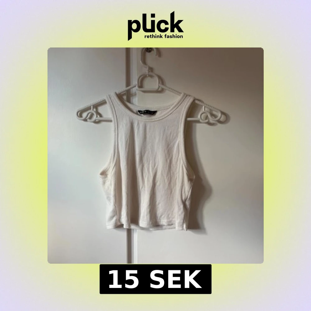Säljer en vit ribbad linnetopp från SHEIN i storlek XS. Toppen är ärmlös med rund halsringning och croppad passform. Perfekt för varma dagar och enkel att matcha med jeans eller kjol. Materialet är mjukt och stretchigt för en bekväm känsla.