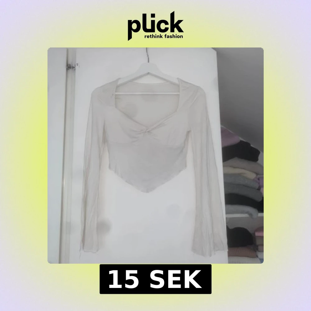 Vit croppad topp från SHEIN - Säljer en vit croppad topp från SHEIN med lång ärm och v-ringad hals. Använd en gång