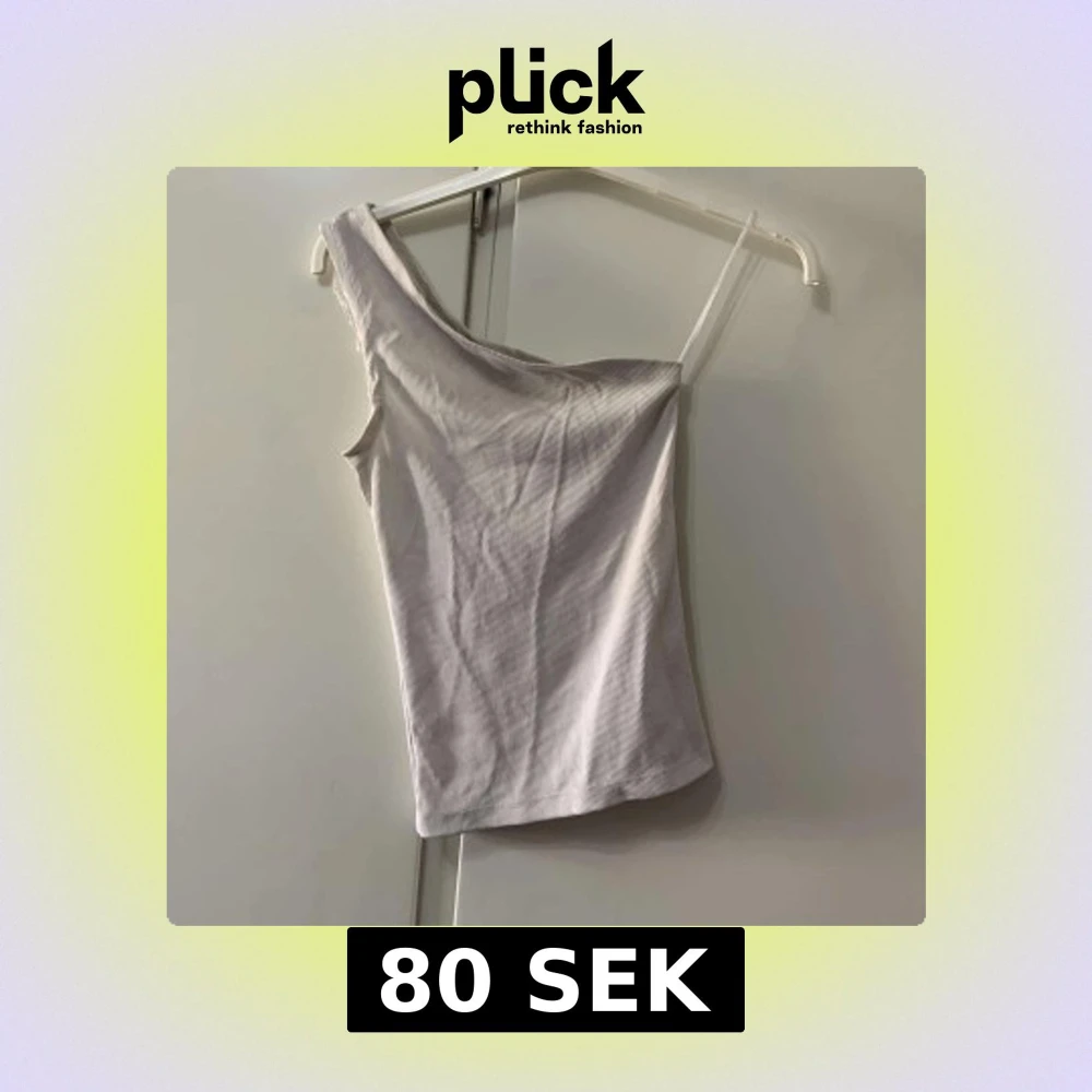 Snygg ljusbeige topp med one shoulder-design och smal axelrem på ena sidan. Ribbad struktur ger en trendig känsla och toppen är figurnära. Perfekt för dig som gillar minimalistisk stil och vill sticka ut lite extra.
