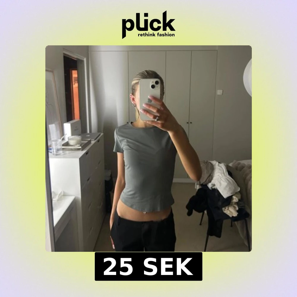 Säljer en stilren grå croppad t-shirt med korta ärmar. I storlek XS
