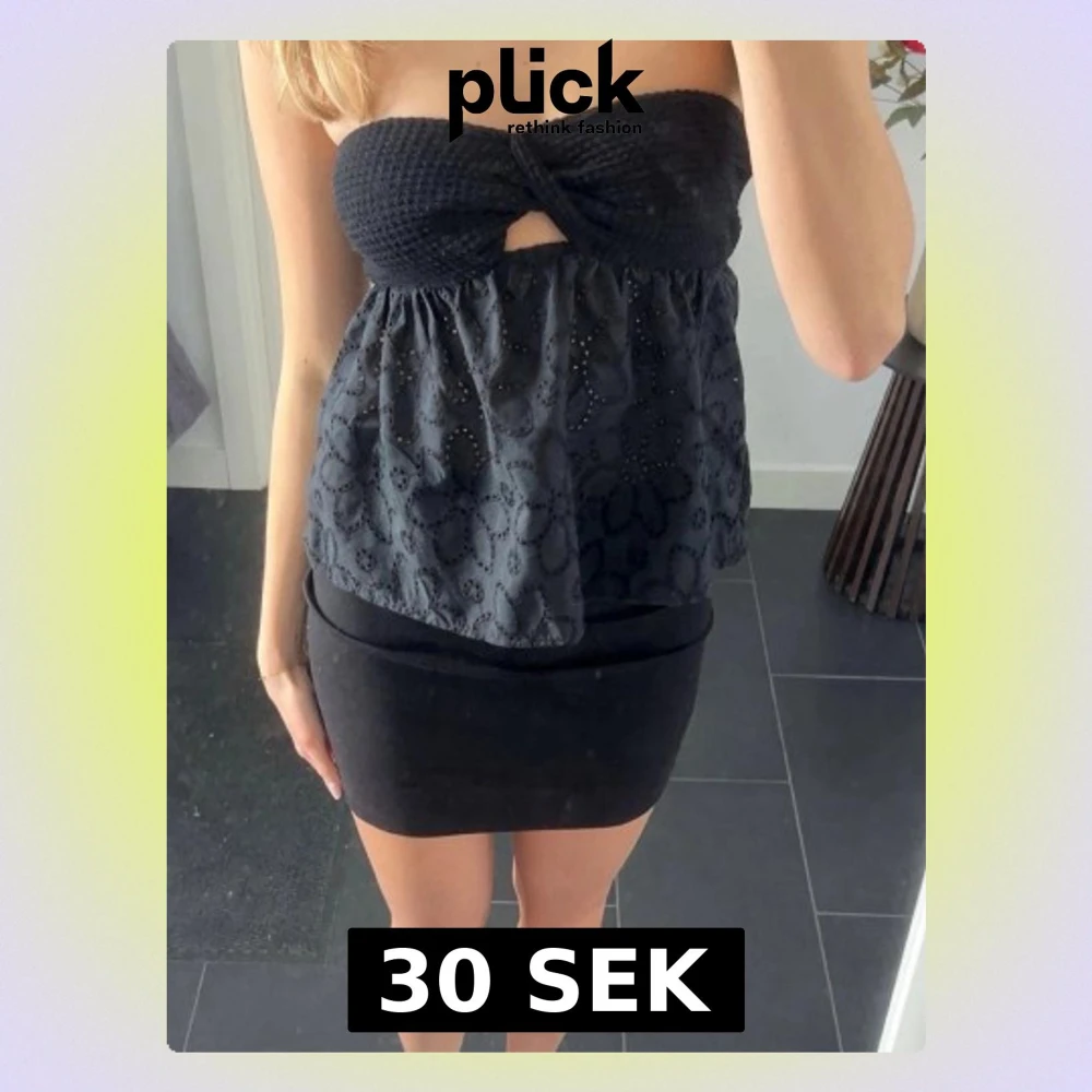 Svart bandeau tubtopp med broderi