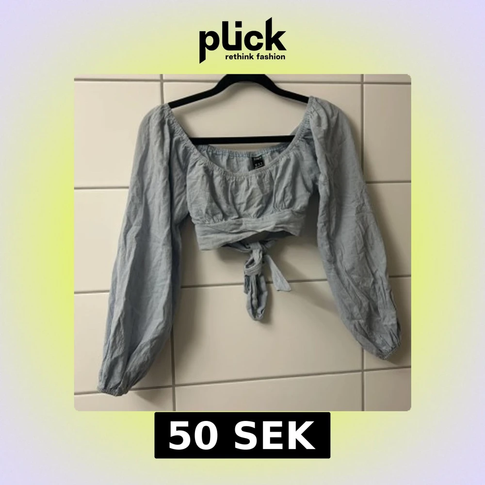 Supersöt ljusblå omlottopp från SHEIN med långa puffärmar och bred knytning i midjan. Toppen har en rundad, lite djupare urringning och är gjord i ett mjukt bomullsliknande material. Perfekt för dig som gillar trendiga och feminina detaljer!
