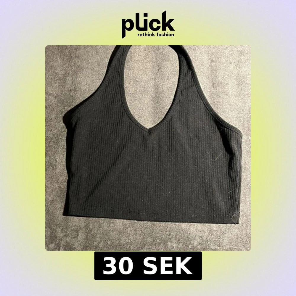 Säljer en svart croppad linnetopp med ribbad struktur och v-ringad hals. Toppen är ärmlös och har en sportig, stilren look som passar perfekt till jeans eller kjol. Materialet känns mjukt och stretchigt, vilket gör den skön att bära hela dagen.