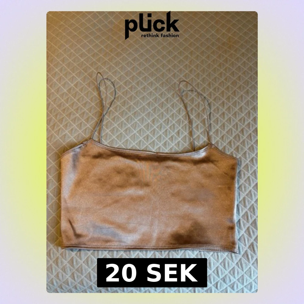 Champagnefärgad bandeau topp från NLY ONE i storlek XS. Toppen har tunna axelband och är gjord i ett glansigt satinmaterial som ger en lyxig känsla. Enkel och stilren design, perfekt att matcha med jeans eller kjol.