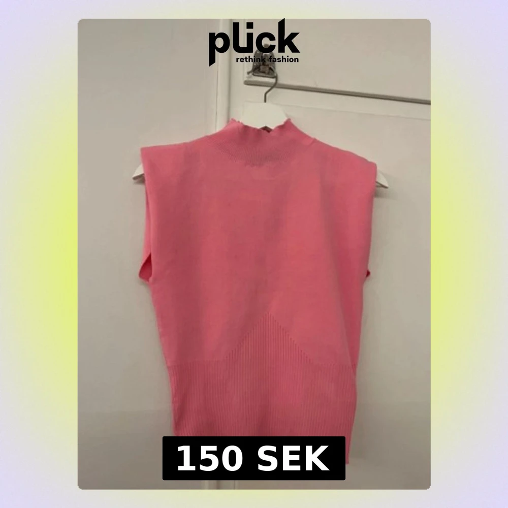 Säljer en snygg rosa topp med ribbad struktur nedtill och vid halsen. Toppen är ärmlös och har en hög krage som ger en cool vibe. Materialet är stickat och mjukt, perfekt för att styla med jeans eller kjol. Färgen är klar rosa och modellen är normal i passningen. Tröjan har även axelvaddar men går att klippa bort