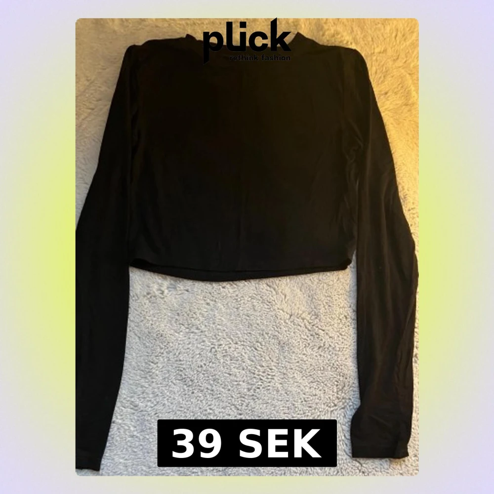 En enkel och stilren svart croppad topp med långa ärmar. Toppen har en rund halsringning och är tillverkad i ett mjukt, stretchigt material som känns bekvämt mot huden. Perfekt att matcha med höga jeans eller kjol.