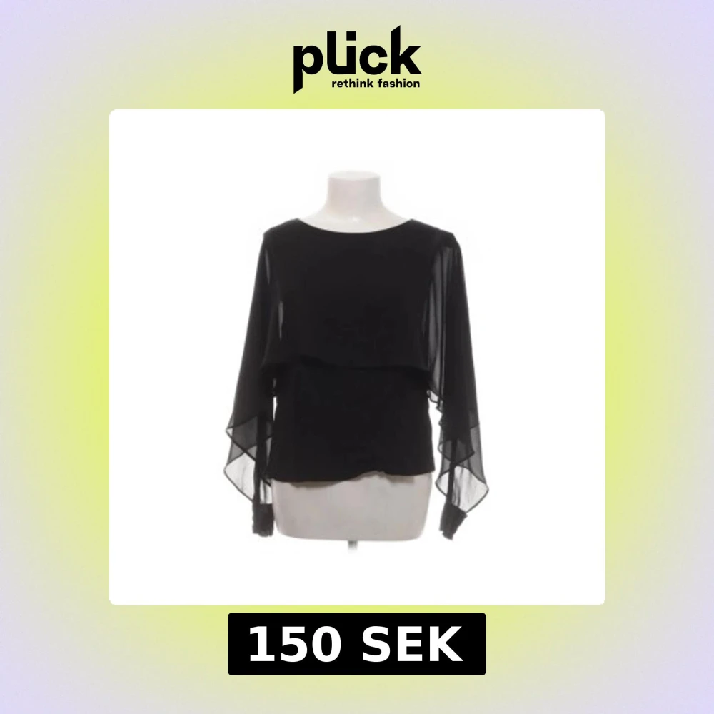 Säljer en svart blus från Zara Woman med långa, transparenta ärmar i chiffongliknande material. Blusen har ett lager över bysten som ger en snygg detalj och flowig känsla. Perfekt för dig som gillar stilrena och eleganta plagg.