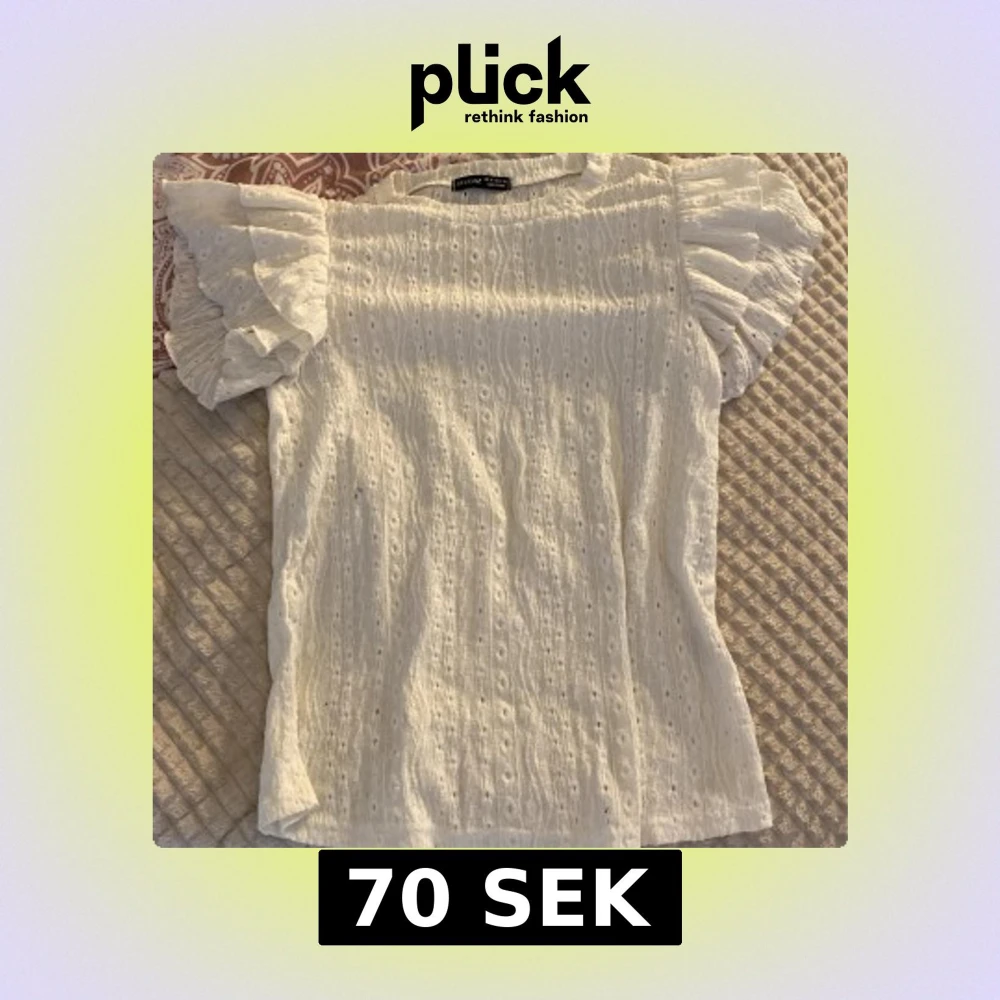 Supersöt vit blus från Shein med broderade detaljer och volangiga korta ärmar.