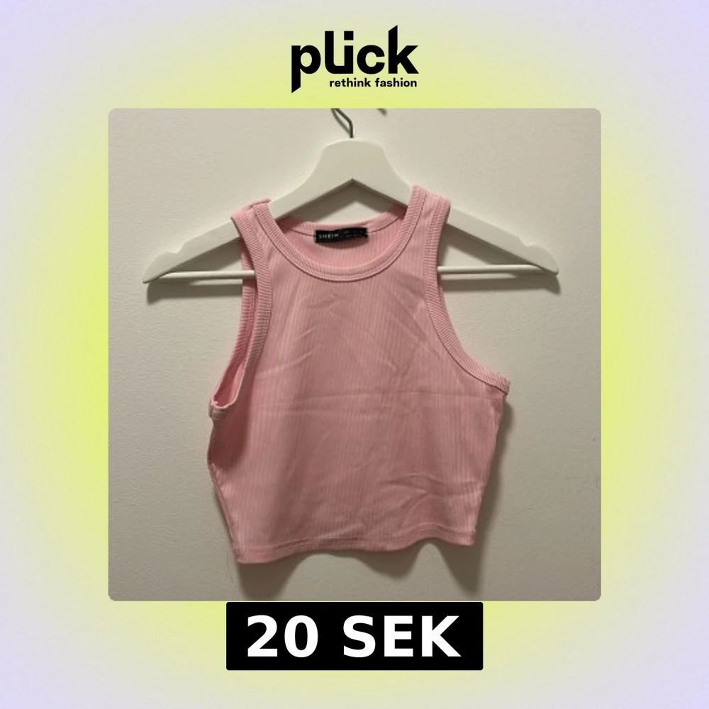 Säljer en ljusrosa croppad linnetopp. Toppen är ribbad och ärmlös med rund halsringning och tight passform. Perfekt för varma dagar.