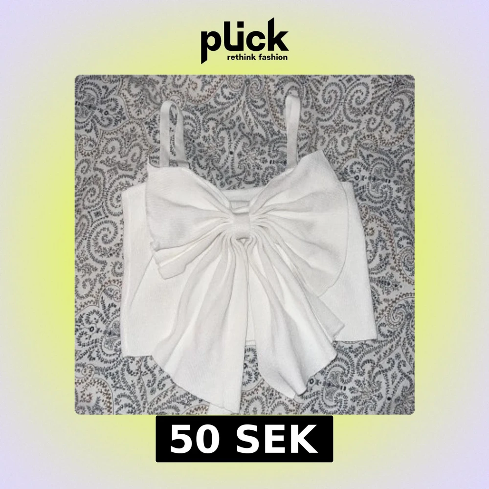 Säljer en vit croppad linnetopp med smala axelband och en stor dekorativ rosett baktill. Toppen är ribbad och har en stilren look. Aldrig använd.