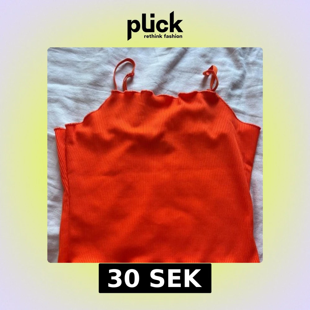 Säljer en ribbad orange linnetopp med smala axelband och vågig kant upptill. Toppen är ärmlös och har en tight passform, perfekt för varma dagar. Materialet är mjukt och stretchigt, vilket gör den superbekväm att bära.