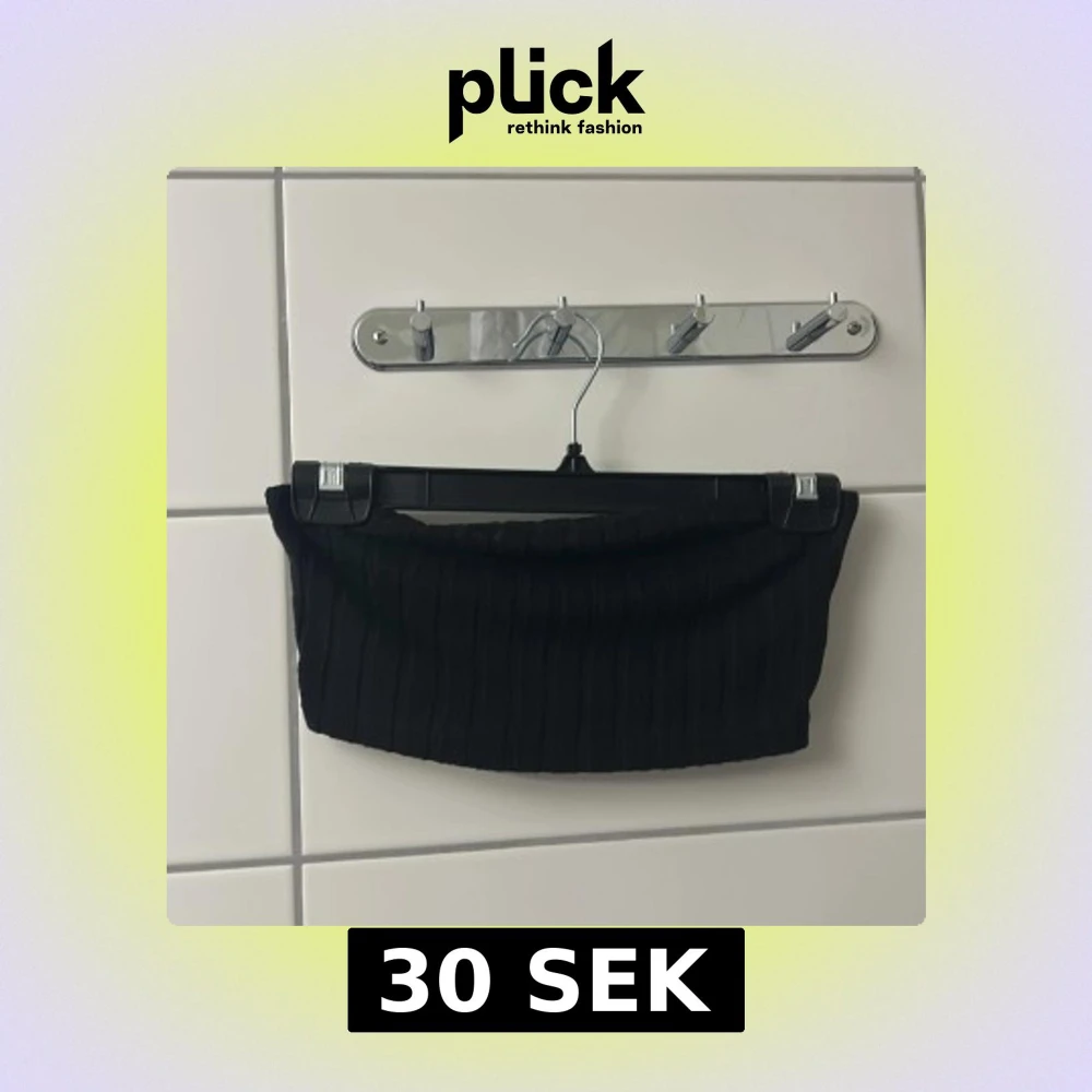Snygg svart bandeau tubtopp med ribbad struktur. Perfekt att styla med höga jeans eller kjol för en trendig look. Enkel och stilren design som passar till många outfits.