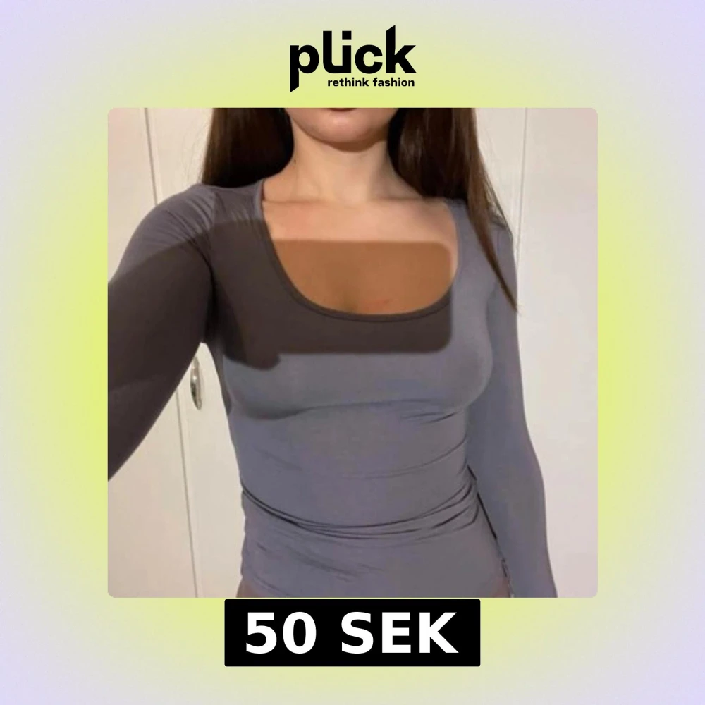 Slimmad grå långärmad topp från SHEIN med rundad, djup urringning. Tunn och stretchig i mjuk bomullsblandning, perfekt att styla med jeans eller kjol. Enkel och stilren design som funkar året runt.