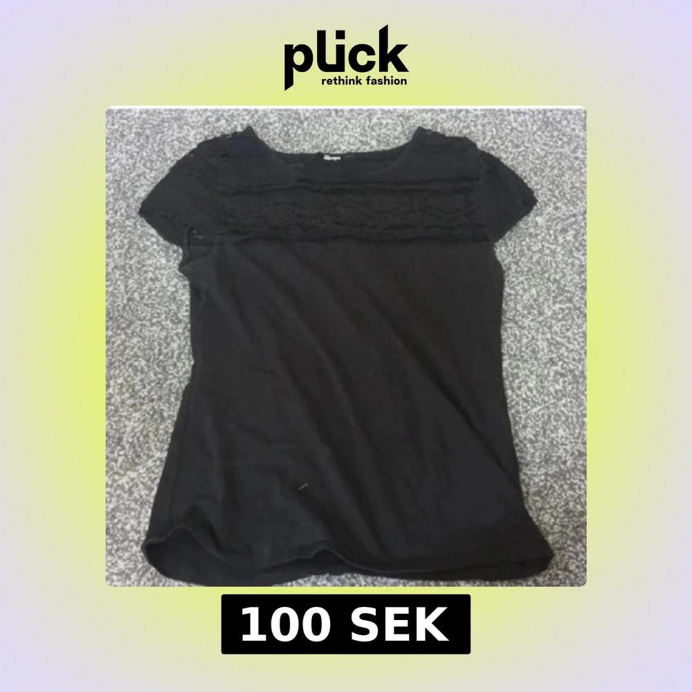 Svart blus med korta ärmar och snygga spetsdetaljer över bröstet och axlarna. Rund halsringning och mjukt material som känns skönt mot huden. Perfekt för dig som gillar en stilren look med lite extra detaljer.