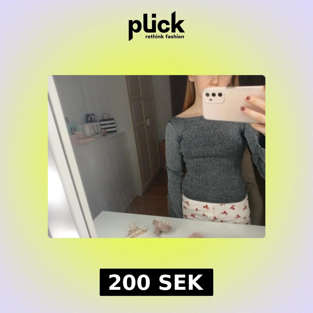 Supersnygg glittrig långärmad tröja från H&M Divided i mörkgrått med silvertrådar. Tröjan är ribbstickad, har en tight passform och bredare halsringning. Perfekt för dig som gillar att sticka ut lite extra.