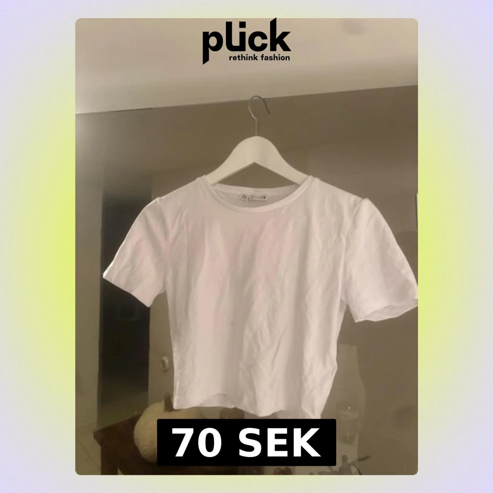 En enkel och stilren vit croppad topp från Zara. T-shirten har rund halsringning och korta ärmar. Tillverkad i mjuk bomull som känns skön mot huden. Perfekt att matcha med höga jeans eller kjol för en clean look.