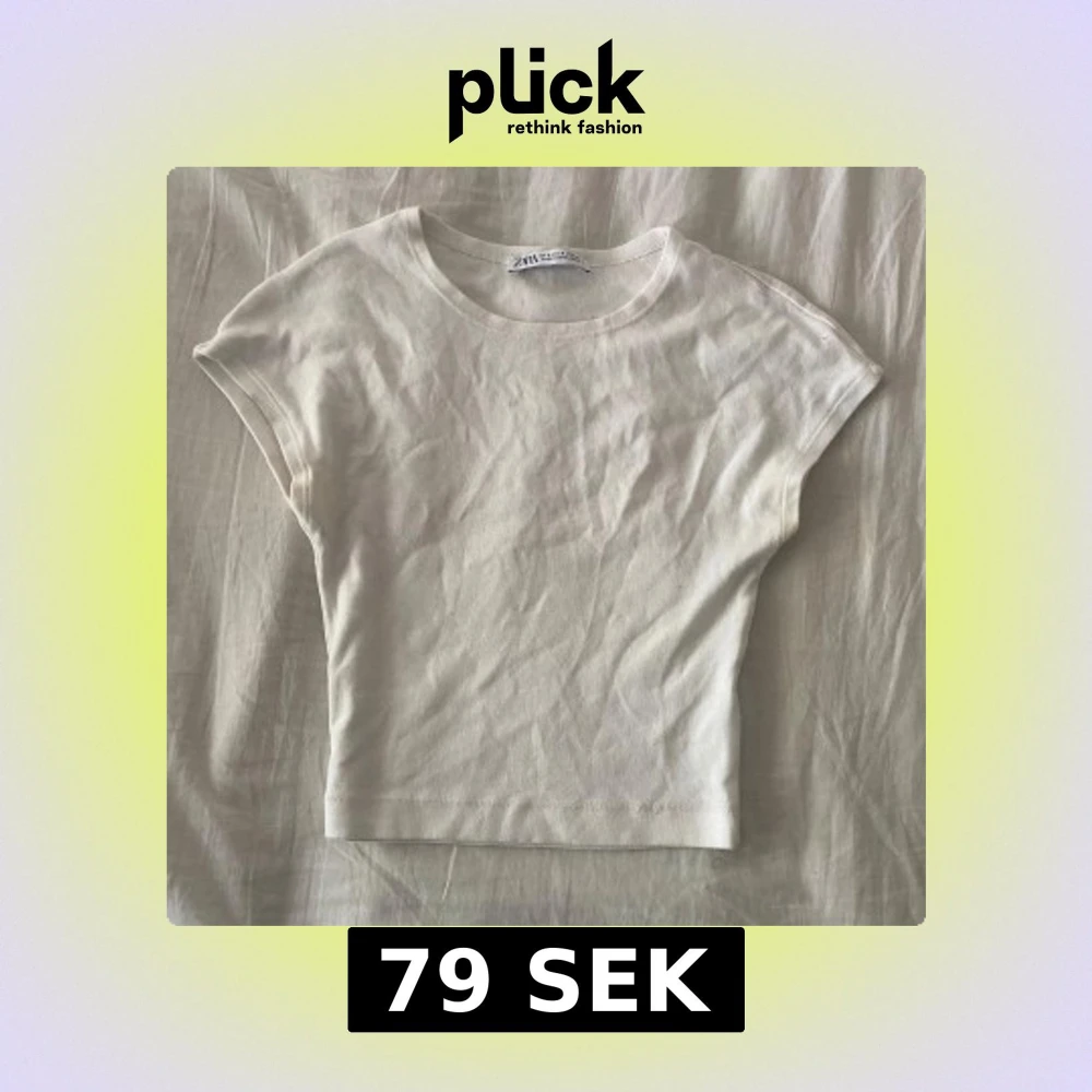 Enkel och stilren vit croppad topp från Zara i mjuk bomull. Modellen har rund halsringning och korta ärmar med en något loose passform. Perfekt att matcha med jeans eller kjol för en clean look.
