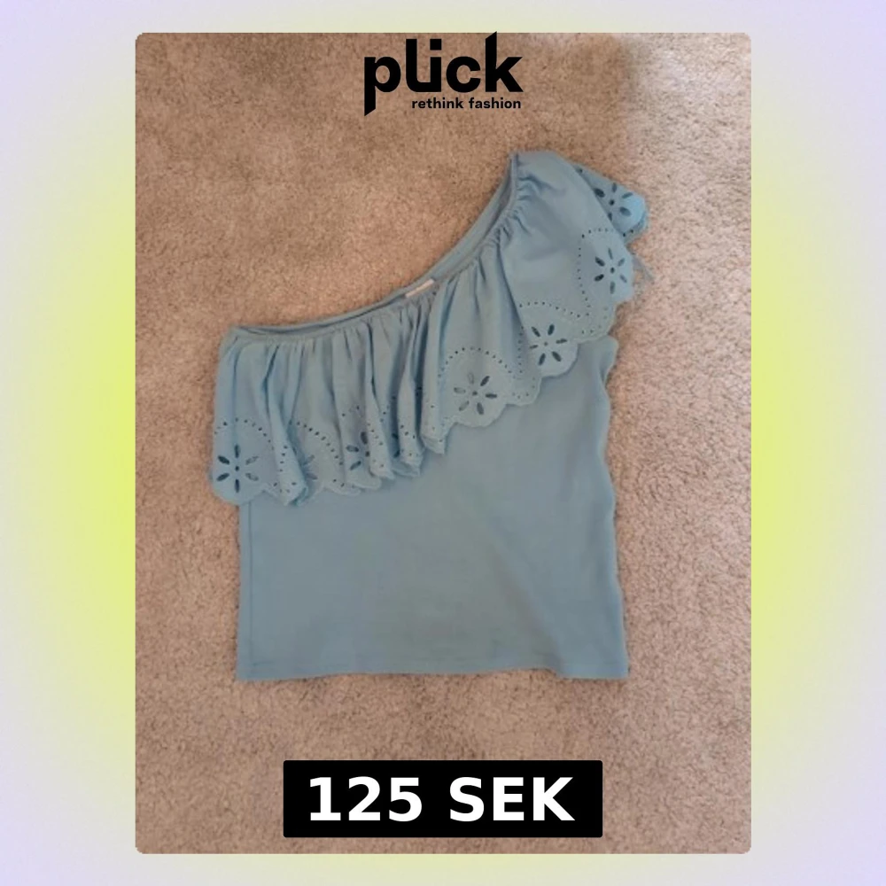Supersöt ljusblå oneshoulder topp från Zara med volangkant och broderade blommönster. Toppen har en axel bar och är tillverkad i mjukt bomullsmaterial. Perfekt för sommarens alla tillfällen! Egentligen barn storlek men passar som XS