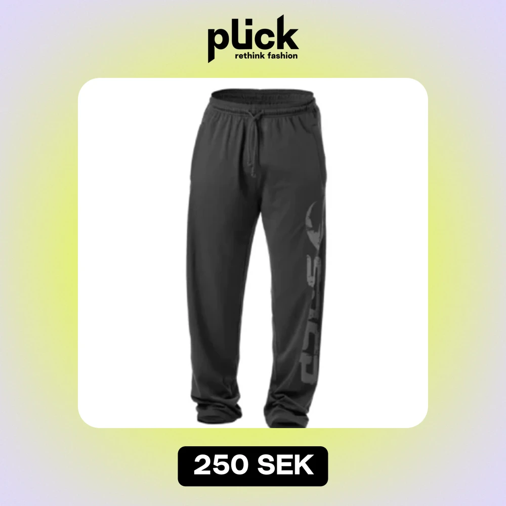 GASP träningsbyxor med tryck - Säljer två par träningsbyxor från GASP, ett par svarta med stort GASP-tryck och orange logga på benet, och ett par grå med texten 'NO COMPROMISES NO EXCUSES' längs benet samt logga. Båda har dragsko i midjan och är i loose fit, perfekta för gymmet. Båda är i strl S och vanlig längd (alltså inte tall). Nypris ligger runt 700kr styck säljer för 250kr var, eller 400kr för båda.
