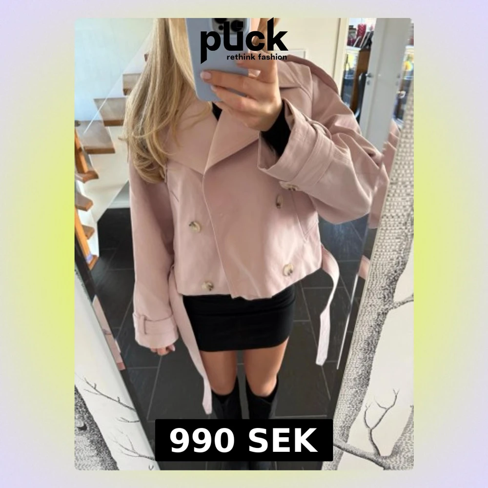 Superfin cropped trenchcoat i ljusrosa färg från Meotine, perfekt till våren!