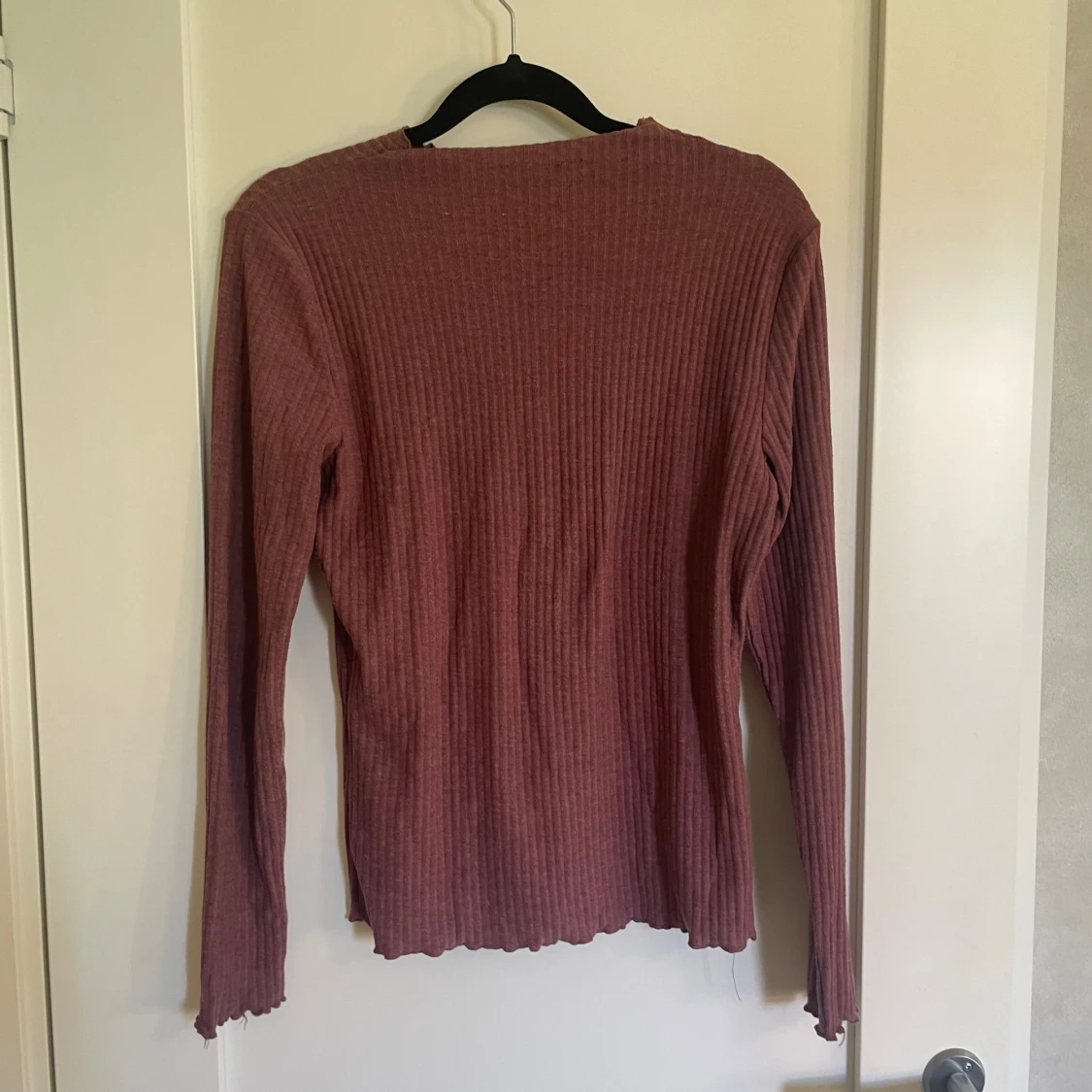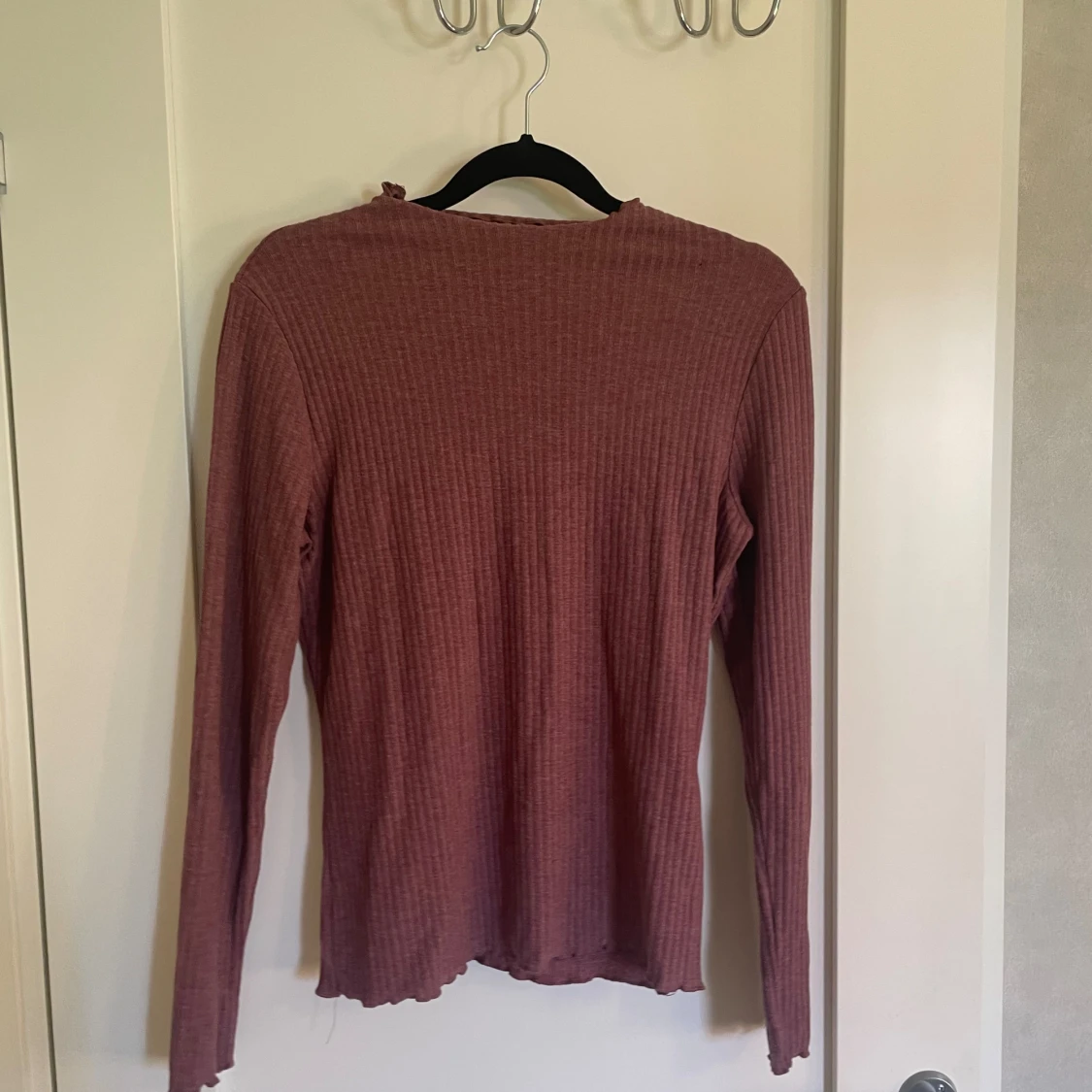 Säljer en superfin vinröd ribbad tröja. Den är långärmad och perfekt för höst och vinter. Tröjan är i bra skick endast använd fåtal gånger. Den är mjuk och bekväm att ha på sig. Passar dig som gillar en normal passform.