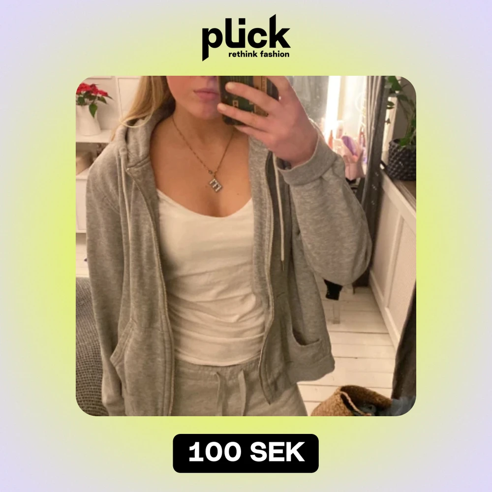 Jättefin grå zip-up! Från hm från början i jätte skönt material💗 Står storlek L på tröjan men jag skulle säga att den är mer S/M i storleken