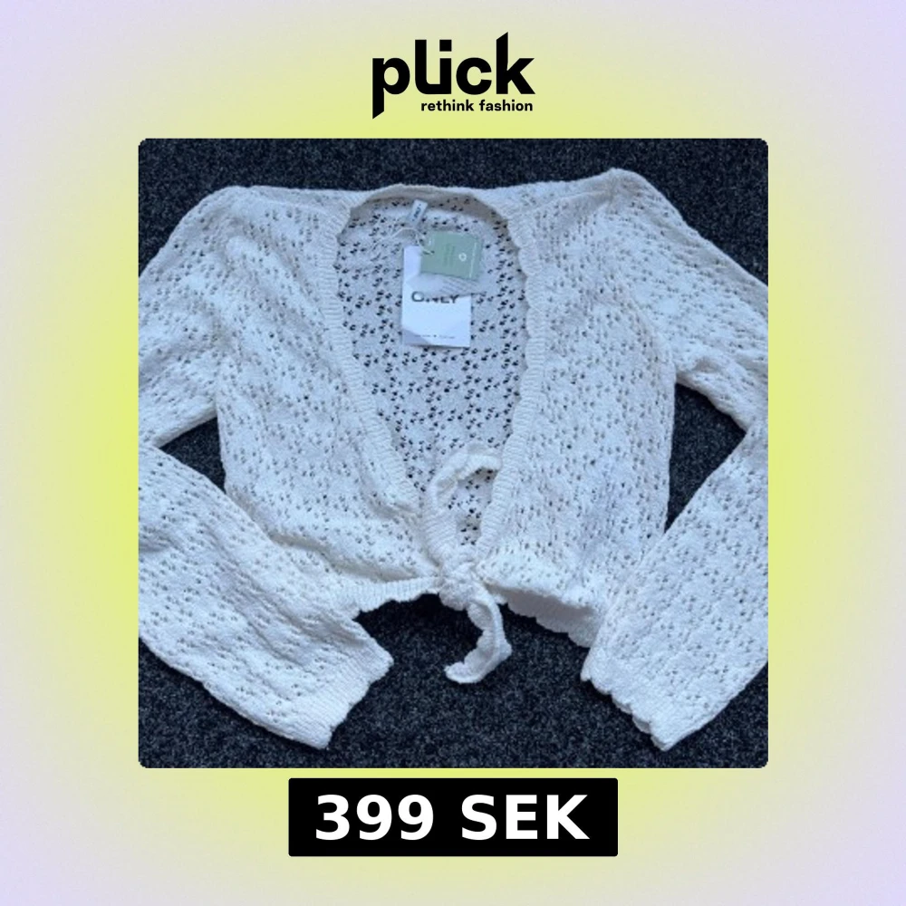 Säljer en söt vit spetskofta från ONLY med knytning framtill. Koftan har långa ärmar och ett fint hålmönster som ger en romantisk känsla. Perfekt för lager-på-lager-stil eller sommarens svalare kvällar. 🌸