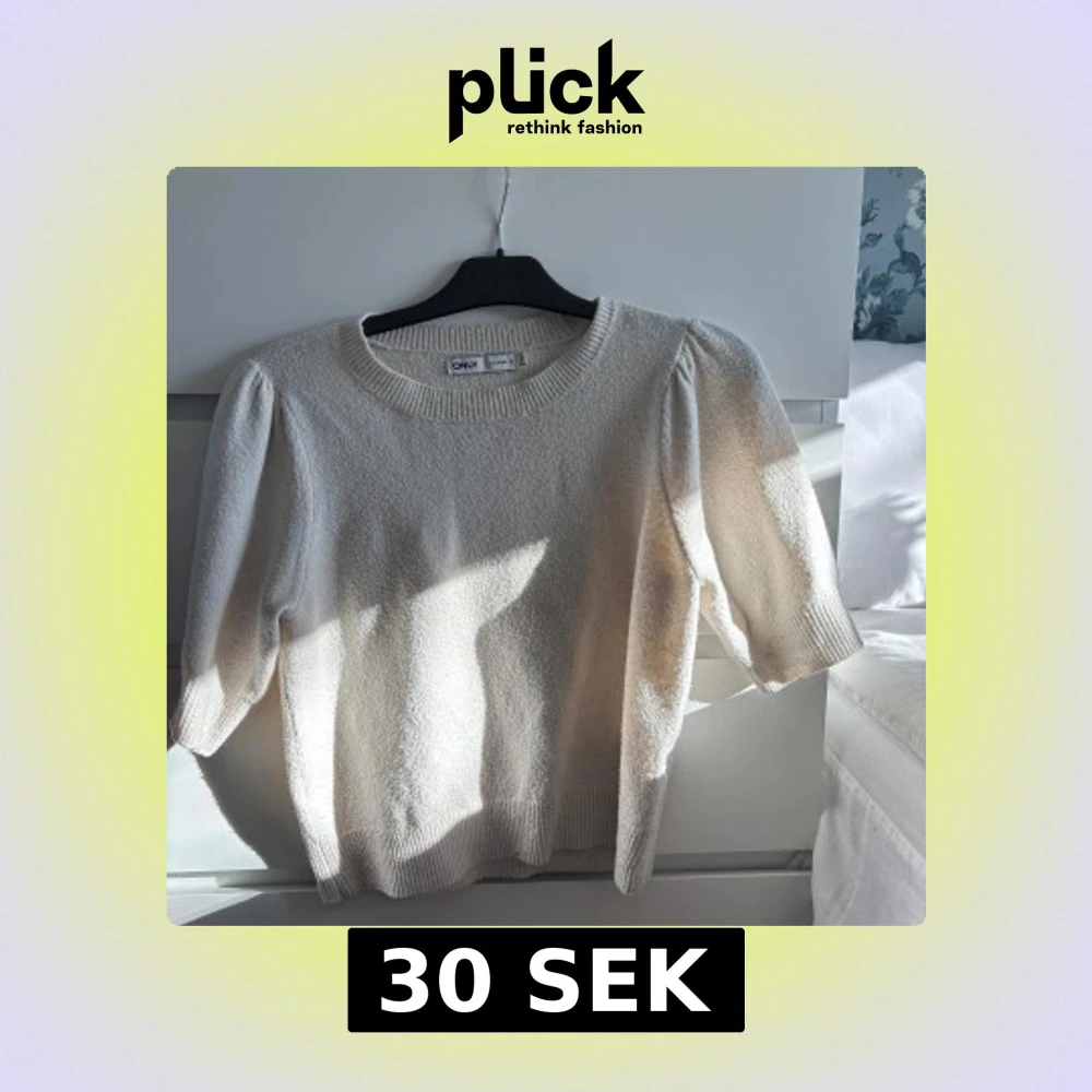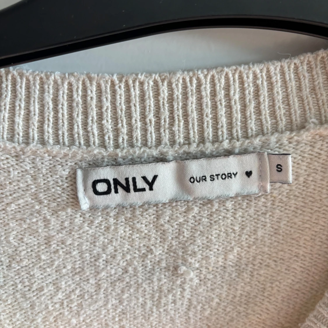 Säljer en beige stickad tröja från ONLY. Tröjan har trekvartsärmar och en rund halsringning. Hör av er vid intresse 🤗