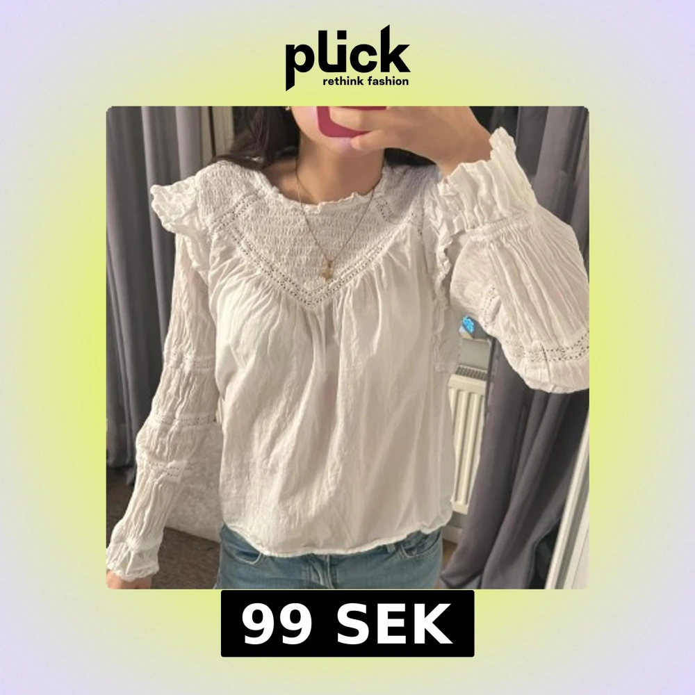 Säljer en romantisk vit blus med spetsdetaljer och volang vid axlarna. storlek s från only