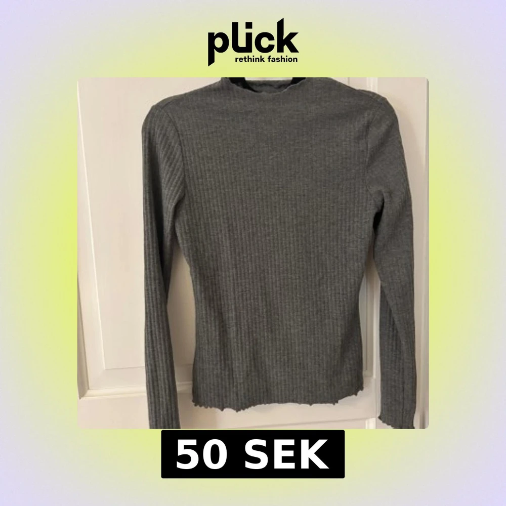 Grå långärmad tröja från ONLY i ribbat material. Tröjan har en tight passform, rund halsringning och vågig kant nertill och vid ärmslut. Använd fåtal gånger