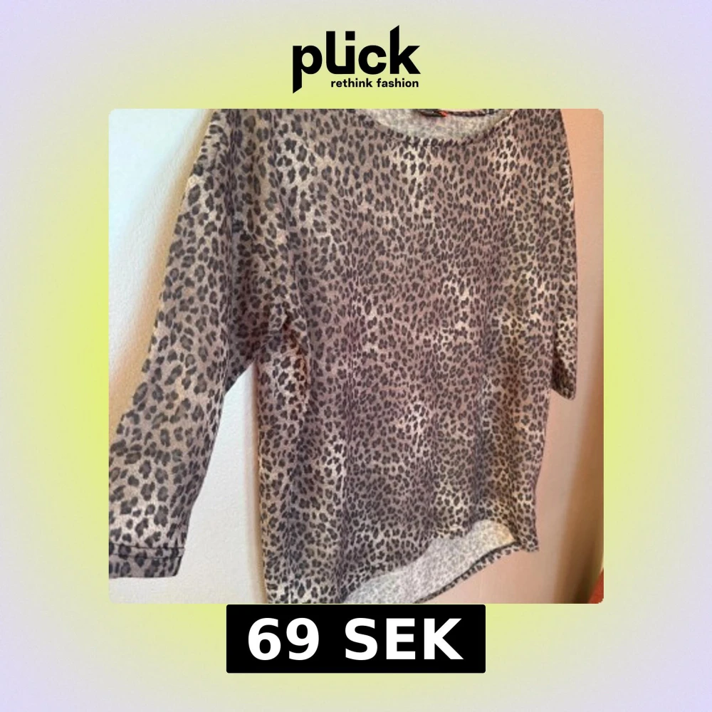 Snygg topp från ONLY i storlek S med leopardmönster i beige och grå toner. Modellen har rund hals, trekvartsärm och är kortare framtill. Materialet är mjukt och lätt, vilket gör den skön att bära och aningen transparent. Stor i storleken.